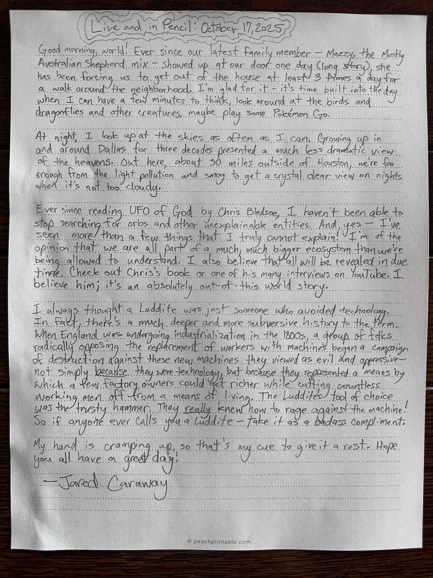 Good morning, world. Ever since our latest family member - Mazzy, the Mostly Australian Shepherd mix - showed up at our door one day (long story), she has been forcing us to get out of the house at least 3 times a day for a walk around the neighborhood. I’m glad for it - it’s time built into the day when I can have a few minutes to just look around at the birds and dragonflies and other creatures, maybe play some Pokémon Go.